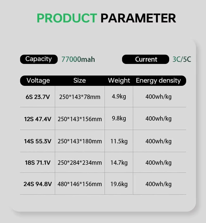 | 24s | 480*146*156mm | 19.6 kg | 400Wh/kg |